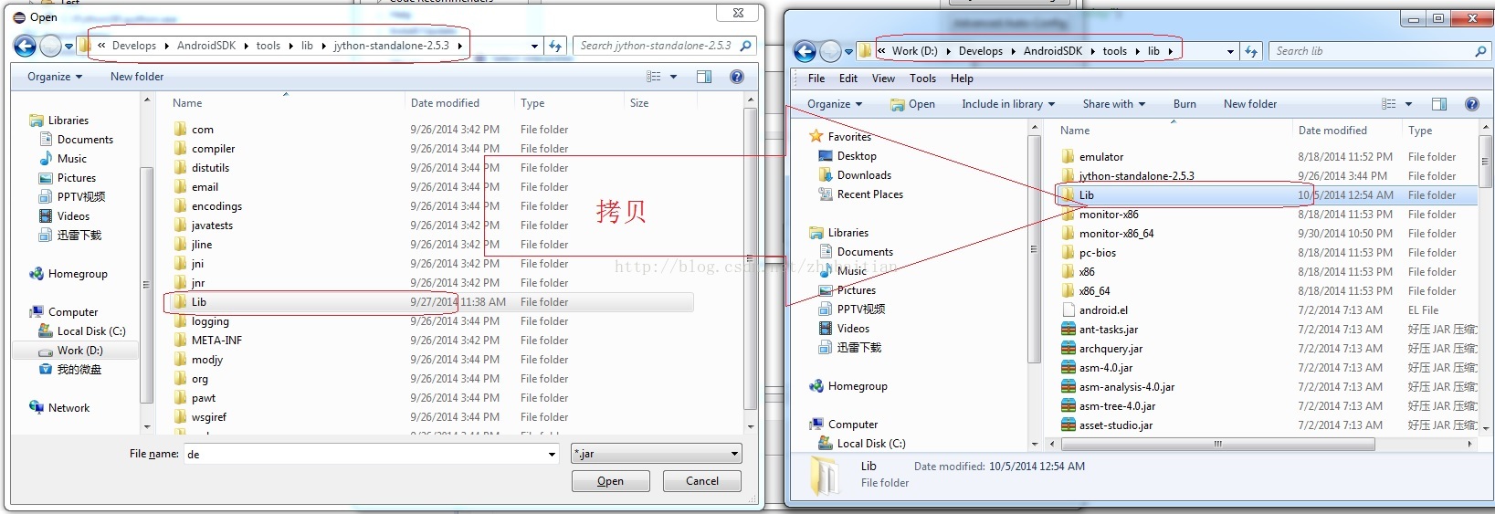 - Step 2: 解压后把解压文件夹以下的Lib文件复制到与Jython解析器Jar包同一层文件夹下(注意这一步非常重要)