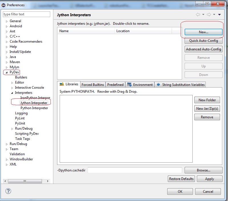 - Step 2: 定位到PyDev>>Interpreters>>Jython Interpreter