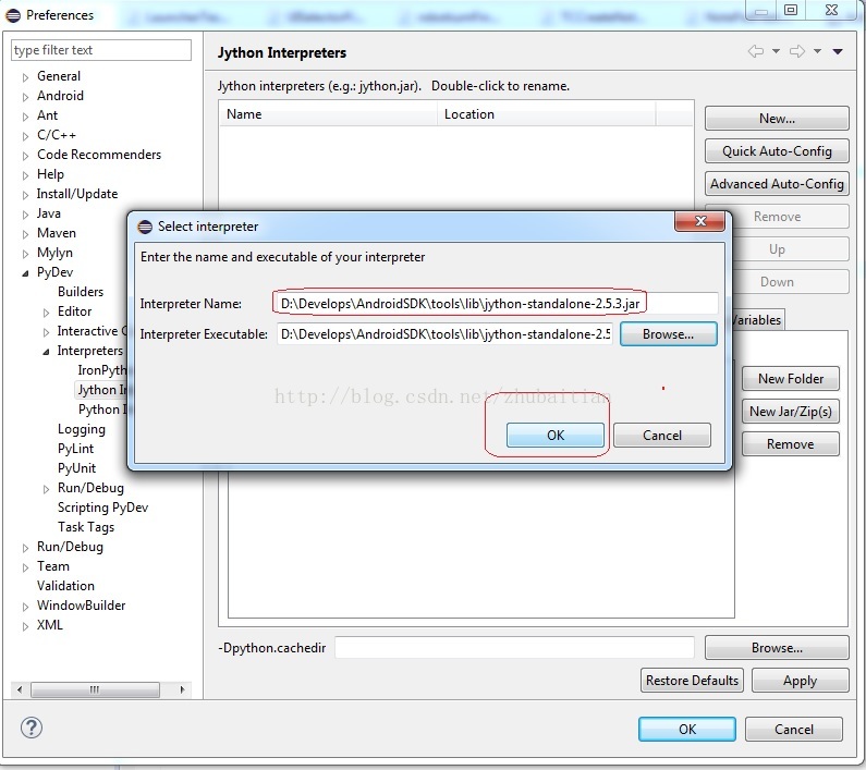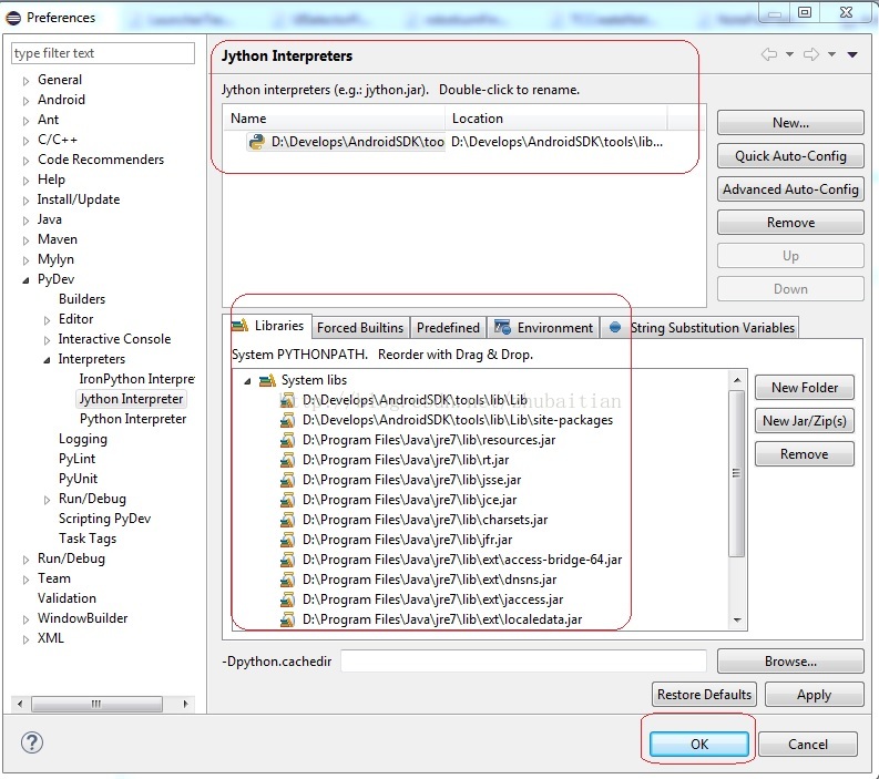 - 安装好后Preferrences的界面应该例如以下所看到的,点击Ok完毕PyDev的Jython配置