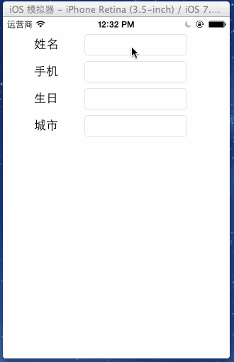 // // BeyondViewController.m // 22_键盘综合案例 // // Created by beyond on 14-8-24. // Copyright (c) 2014年 com.beyond. All rights reserved. // #import "BeyondViewController.h" @interface BeyondViewController () // 全部省名组成的数组 @property (nonatomic, strong) NSArray *provinceNameArr; // 字典:省名key---value城市名组成的数组 @property (nonatomic, strong) NSDictionary *provinceName_cities_Dict; // 当前激活的活跃状态的输入框 @property (nonatomic, weak) UITextField *currentTextField; // 键盘上的工具条 @property (nonatomic, weak) KeyboardTool *tool; // 全部输入框控件 组成的数组 @property (nonatomic, strong) NSMutableArray *allTextFields; @end @implementation BeyondViewController - (void)viewDidLoad { [super viewDidLoad]; self.allTextFields = [NSMutableArray array]; // 类方法,实例化一个KeyboardTool对象 self.tool = [KeyboardTool keyboardTool]; self.tool.backgroundColor = [UIColor clearColor]; self.tool.barTintColor = [UIColor lightGrayColor]; // 而且设置键盘工具的代理为当前控制器,用于接收其内部的btn点击事件,感知btnType self.tool.toolDelegate = self; // 1.设置全部文本框的键盘工具条 都是 自己定义的KeyboardTool for (UITextField *field in self.view.subviews) { // 假设不是文本输入框,继续 if (![field isKindOfClass:[UITextField class]]) continue; // 每个文本输入框的键盘工具都是它... field.inputAccessoryView = self.tool; // 数组保存全部的文本输入框控件,后面要用到 [self.allTextFields addObject:field]; // 设置每个文本输入框的代理都是当前控制器 field.delegate = self; } // 2.为生日输入框,设置键盘为DatePicker [self setInputViewForBirthdayTextField]; // 3.为城市输入框,设置键盘为DatePicker [self setInputViewForCityTextField]; // 4.载入全部的数据 [self loadAllData]; } // 2.为生日输入框,设置键盘为DatePicker - (void)setInputViewForBirthdayTextField { // 设置生日的键盘(不用设置宽高和位置) UIDatePicker *datePicker = [[UIDatePicker alloc] init]; // 设置区域为中国中文简体 datePicker.locale = [[NSLocale alloc] initWithLocaleIdentifier:@"zh_CN"]; // 模式为:仅仅显示日期 datePicker.datePickerMode = UIDatePickerModeDate; // 监听datePicker的值改事件 [datePicker addTarget:self action:@selector(datePickerValueChangeed:) forControlEvents:UIControlEventValueChanged]; // 设置其为生日输入框的view self.birthdayTextField.inputView = datePicker; } // 3.为城市输入框,设置键盘为DatePicker - (void)setInputViewForCityTextField { // 设置城市的键盘 UIPickerView *picker = [[UIPickerView alloc] init]; // 设置数据源和代理 picker.dataSource = self; picker.delegate = self; // 显示指示器 picker.showsSelectionIndicator = YES; // 设置其为城市输入框的view self.cityTextField.inputView = picker; } // 4.载入全部的数据 - (void)loadAllData { // 载入省份数据 NSDictionary *dict = [NSDictionary dictionaryWithContentsOfFile:[[NSBundle mainBundle] pathForResource:@"cities" ofType:@"plist"]]; // 全部以省名组成的数组 self.provinceNameArr = dict[@"provinces"]; // 字典,键是省名,值是城市名组成的数组 self.provinceName_cities_Dict = dict[@"cities"]; } // 2.1监听生日选择控件的值改变事件,为生日输入框赋值 - (void)datePickerValueChangeed:(UIDatePicker *)picker { NSDateFormatter *formatter = [[NSDateFormatter alloc] init]; formatter.dateFormat = @"yyyy-MM-dd"; // 生日输入框赋值 self.birthdayTextField.text = [formatter stringFromDate:picker.date]; } #pragma mark - PickerView数据源方法 // 一共多少列 - (NSInteger)numberOfComponentsInPickerView:(UIPickerView *)pickerView { // 第一列是省名,第二列是省名相应的城市数组 return 2; } // 每一列相应多少行 - (NSInteger)pickerView:(UIPickerView *)pickerView numberOfRowsInComponent:(NSInteger)component { if (component == 0) { // 返回省名数组的长度 return self.provinceNameArr.count; } else { // 返回第1列 当前选中的行号 NSUInteger rowNum = [pickerView selectedRowInComponent:0]; // 先从省名数组,取出相应的省名 NSString *pName = self.provinceNameArr[rowNum]; // 再从字典中,通过省名,获取城市数组,并返回其长度 NSArray *cityArr = self.provinceName_cities_Dict[pName]; return cityArr.count; } } // 每列每行显示什么数据 - (NSString *)pickerView:(UIPickerView *)pickerView titleForRow:(NSInteger)row forComponent:(NSInteger)component { if (component == 0) { //前一列,显示省名 return self.provinceNameArr[row]; } else { // 返回第1列 当前选中的行号 NSUInteger rowNum = [pickerView selectedRowInComponent:0]; // 先从省名数组,取出相应的省名 NSString *pName = self.provinceNameArr[rowNum]; // 再从字典中,通过省名,获取城市数组,并返回其长度 NSArray *cityArr = self.provinceName_cities_Dict[pName]; return cityArr[row]; } } // UIPickerView选中了某一行就会调用 - (void)pickerView:(UIPickerView *)pickerView didSelectRow:(NSInteger)row inComponent:(NSInteger)component { // 刷新后一列的数据,联动效果 [pickerView reloadComponent:1]; NSUInteger pRowNum = [pickerView selectedRowInComponent:0]; // 先从省名数组,取出相应的省名 NSString *pName = self.provinceNameArr[pRowNum]; NSUInteger cRowNum = [pickerView selectedRowInComponent:1]; // 再从字典中,通过省名,获取城市数组,并返回其相应的城市名 NSArray *cityArr = self.provinceName_cities_Dict[pName]; NSString *cName = cityArr[cRowNum]; // 城市输入框赋值 self.cityTextField.text = [NSString stringWithFormat:@"%@ %@", pName, cName]; } #pragma mark - 重点!!!!!!!!keyboardTool代理方法 - (void)keyboardTool:(KeyboardTool *)tool buttonType:(KeyboardToolButtonType)type { if (type == kKeyboardToolButtonTypeDone) { //当点击完毕时,当前活动的输入框,取消第一响应者,退出键盘 [self.currentTextField resignFirstResponder];