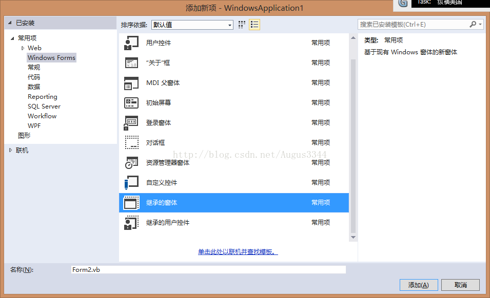 3.通过Windows Forms加入继承的窗口。例如以下图