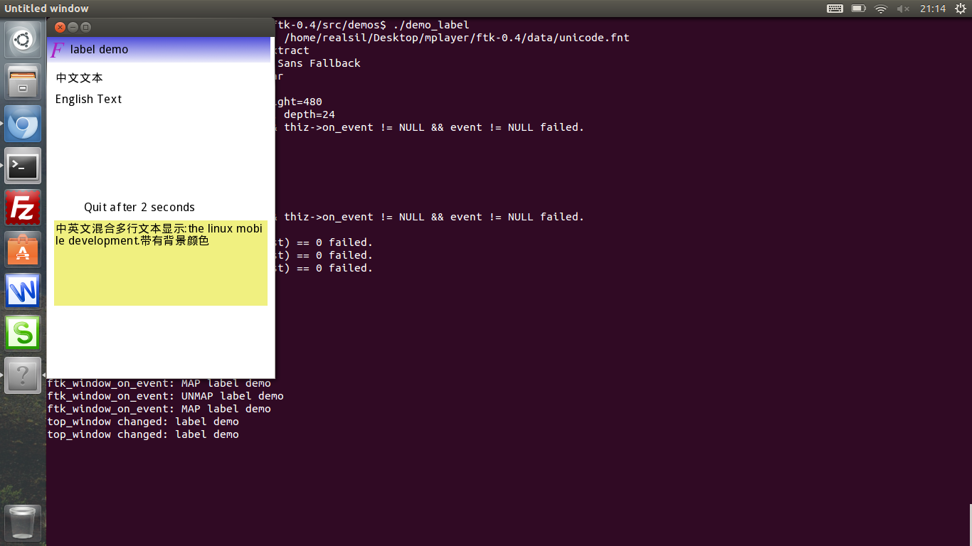 上面的代码有80行左右,可是流程不复杂。相同,代码在创建了一个win控件后。创建了六个button控件。它们依次是show、hide、按钮測试、yes、no、quit。当然,在创建button的时候,我们还得配置对应的回调函数。这里有四个回调函数。button_quit_clicked是quit使用。而button_default_clicked是缺省使用的回调函数。