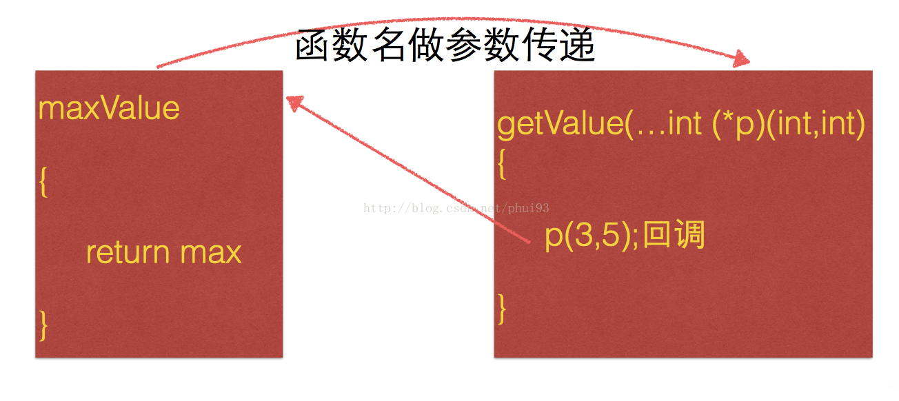 int value = getValue(3, 5, maxValue);(函数调用:getValue函数运行过程中再调用(回调)maxValue)
