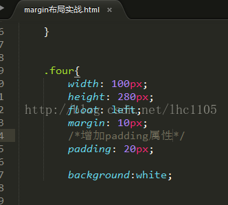 注意,这里在实际做的时候,由于增加了padding值,导致了div最后不能并排显示在父div中。这里还改动了div的宽度值,使第四个div不至于被挤到以下去。