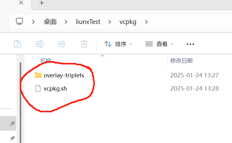 2.在linuxTest下创建一个文件夹vcpkg,把批处理程序解压到vcpkg文件夹下