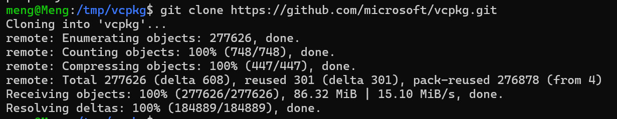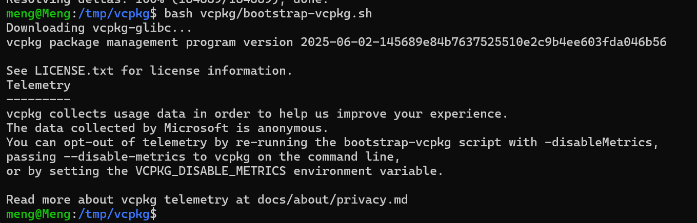 拉取成功后再执行bash vcpkg/bootstrap-vcpkg.sh命令