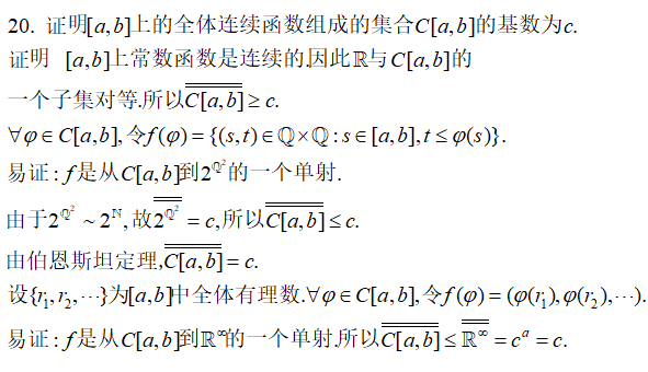 6.利用基数大小的定义和伯恩斯坦定理求集合的基数。代表题目为17、18(2)(3)、19、20题。
