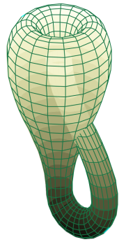 在数学领域中,Klein瓶,即克莱因瓶(德语:Kleinsche Flasche)是指一种无定向性的平面,比如二维平面,就没有“内部”和“外部”之分。克莱因瓶最初的概念提出是由德国数学家菲利克斯·克莱因提出的。克莱因瓶和莫比乌斯带非常相像。