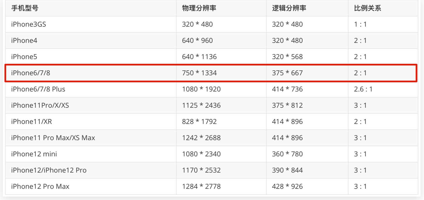 移动端页面制作主要以iphone6/7/8为参考,逻辑分辨率宽度375,按照二倍图(即实际物理分辨率)750产出设计图