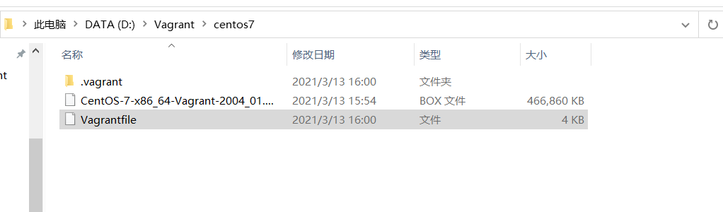 2)vagrant box add --name base vagrant-centos-7.box base 是默认虚拟机名,可以自定义,但是自定义名就需要改变 Vagrantfile 文件里 config.vm.box 的属性值,改成自定义的名字