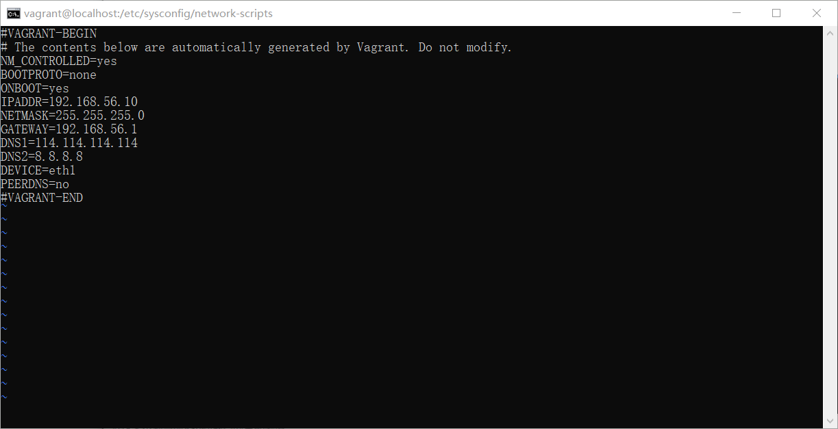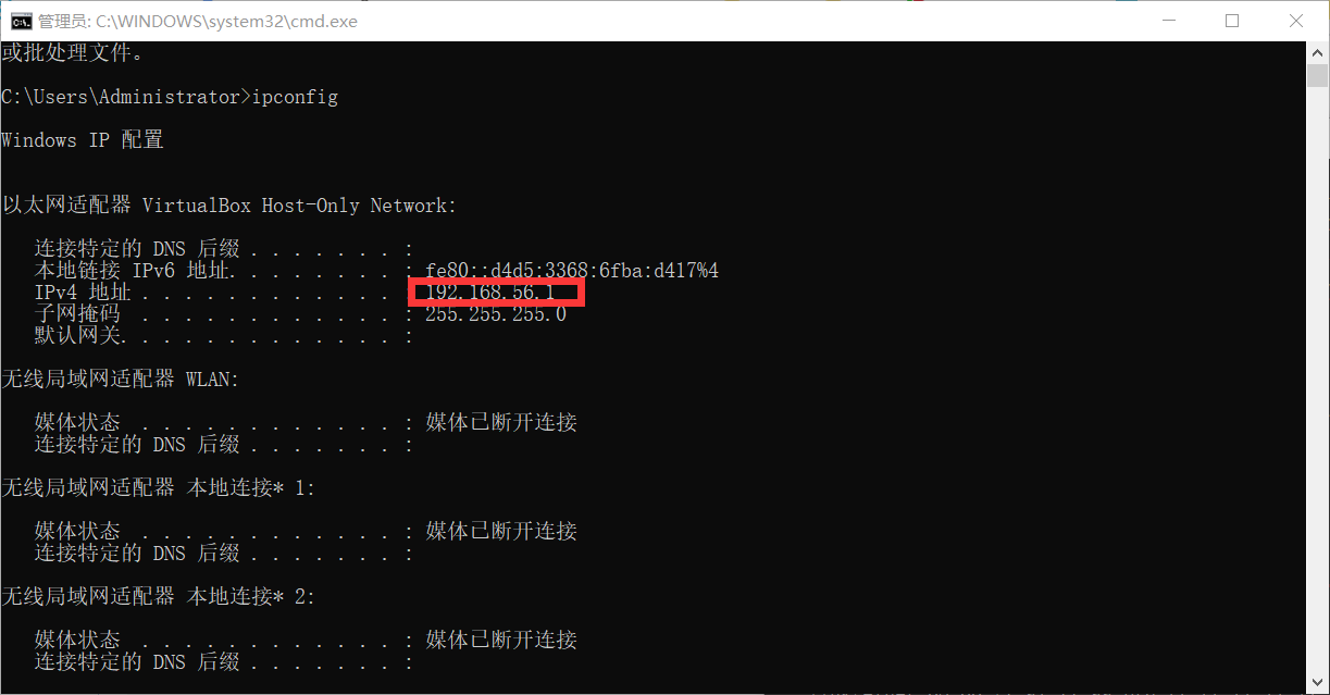 5、固定 linux 的ip地址。使用ipconfig 查看 vagrant 的 ip 地址