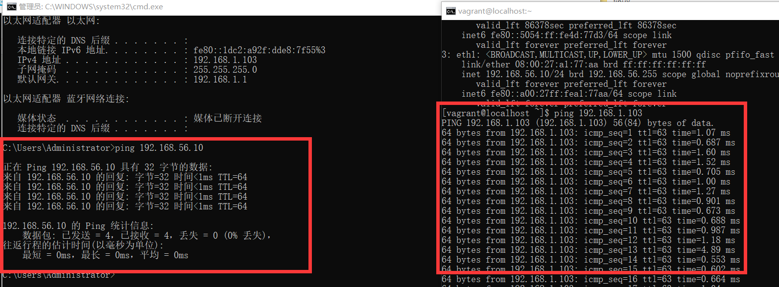 互相ping检查是否连接
