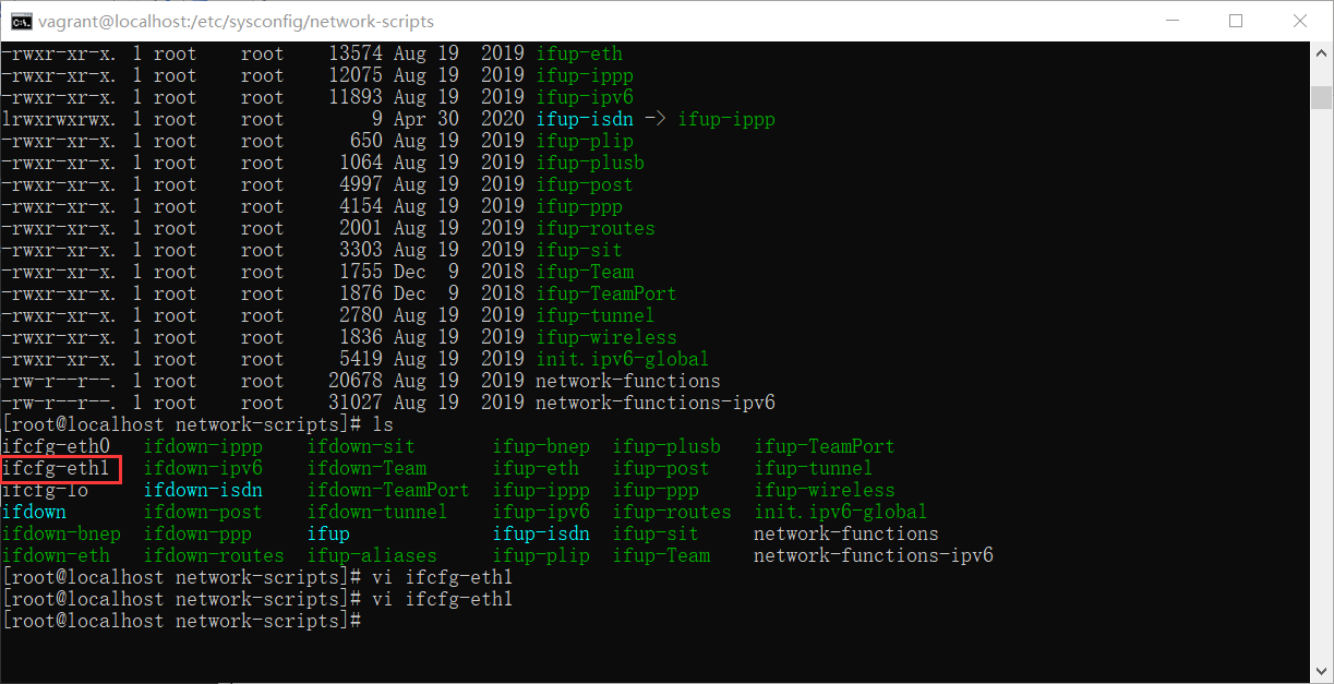这里是 eth1。然后去网卡配置路径:cd /etc/sysconfig/network-scripts/ ,然后对对应网卡的配置文件,添加网关和DNS的配置