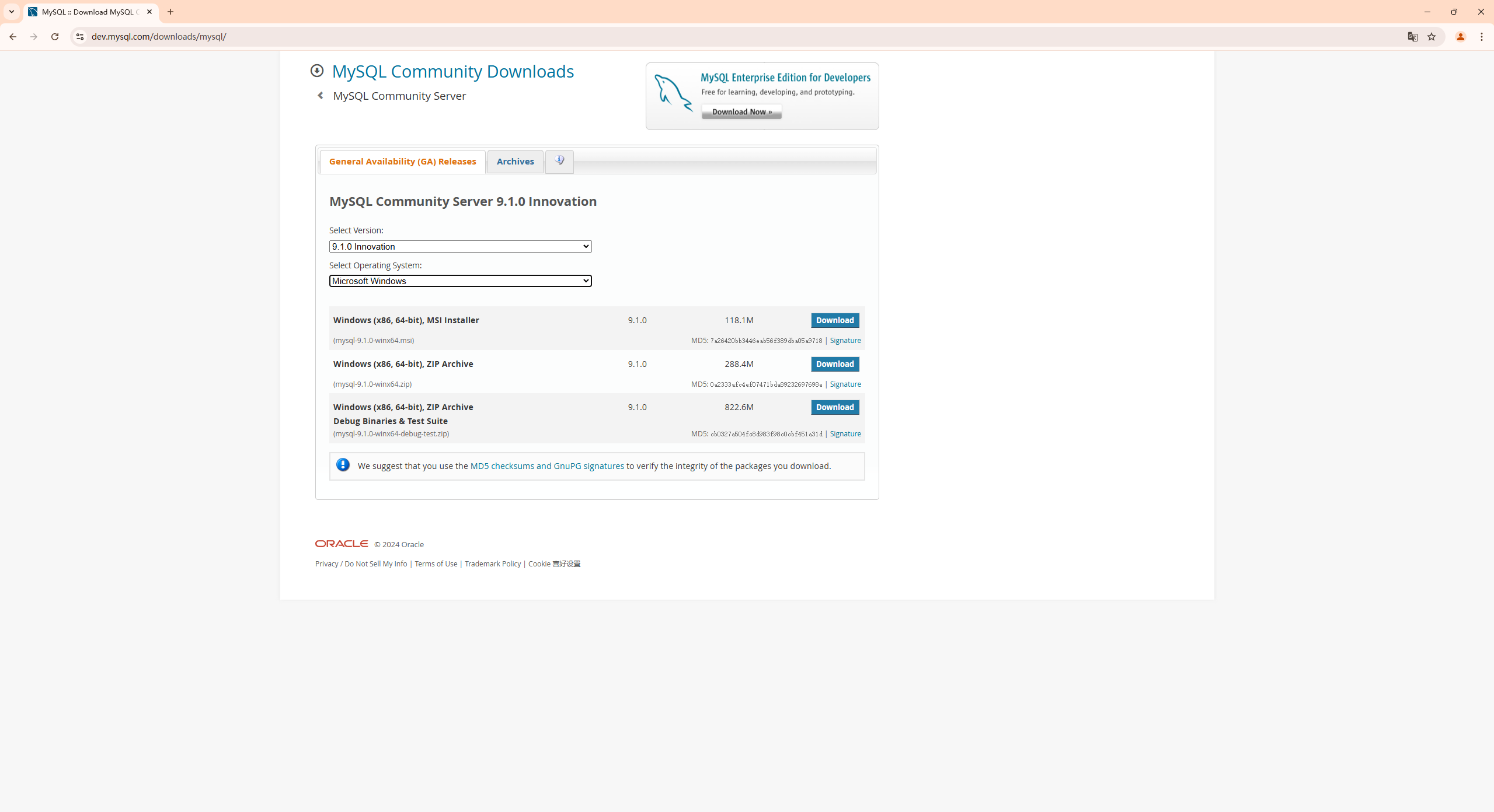 进入后选择对应的版本,可以默认,这里主要是操作系统的选择,然后下载MSI这个:
