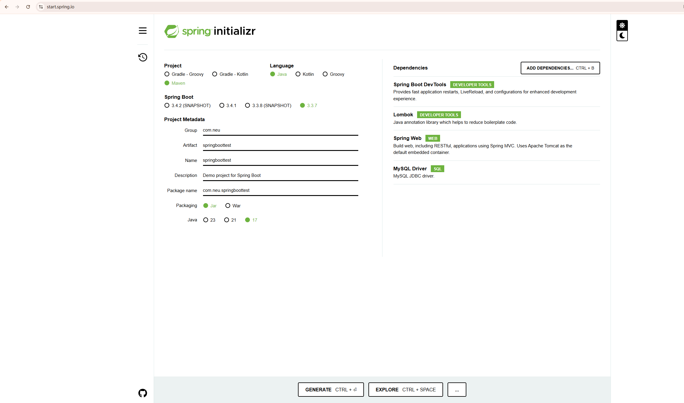 访问spring.io,在上方的projects找到spring Initializr,配置如下: