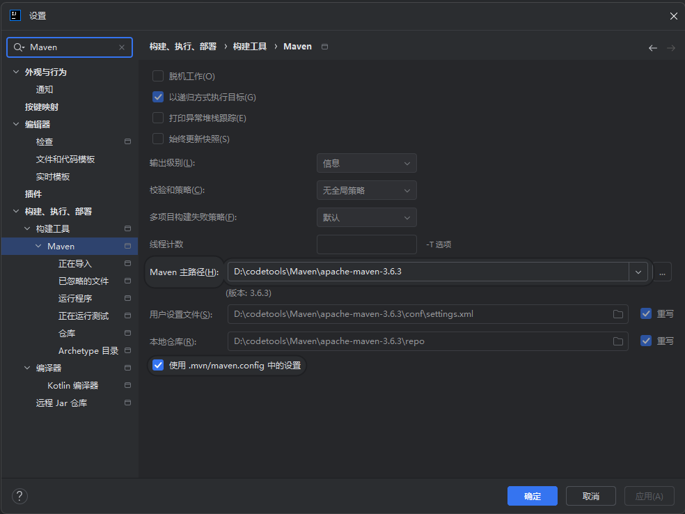 其中repo为自己创建的,路径参考上图。点击应用->确定。