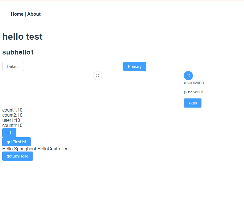 <div> <div>{{result2}}</div> <div><el-button type="primary" @click="getSayHello">getSayHello</el-button></div> </div>
