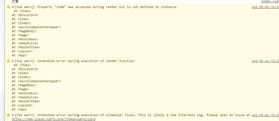 然后经过查看是因为我在组件blockCard中v-for 和 v-if同时引用了,解决掉这个就没问题了。
