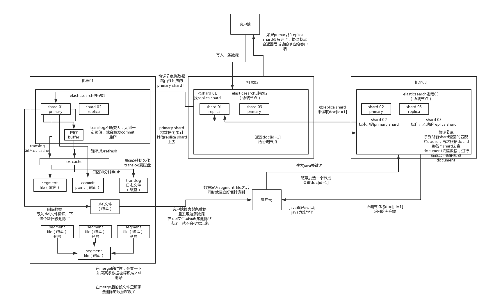 3)实际的node上的primary shard处理请求,然后将数据同步到replica node