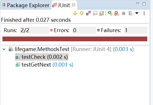 更令人意想不到的是check方法没有通过测试,虽然后来找出了原因,但这也让我对单元测试的重要性有了进一步的认识。该方法中存在的错误虽然不会导致程序无法运行,但也是很大的隐患(原本该置“1”的元素没有执行),如果不是在单元测试中发现了问题,可能这个Bug会存在很久。