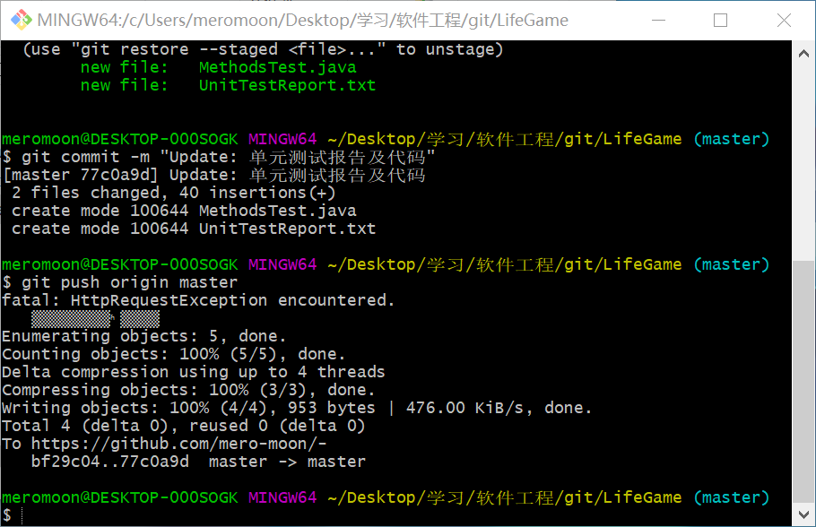 3、push测试报告和测试代码到各自的github仓库
