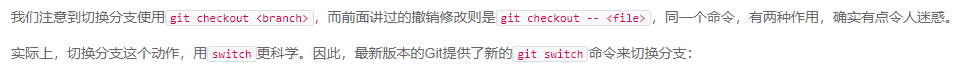 5)新版本使用命令git switch -c <branchname>来创建并且切换到新的分支;原因如下: