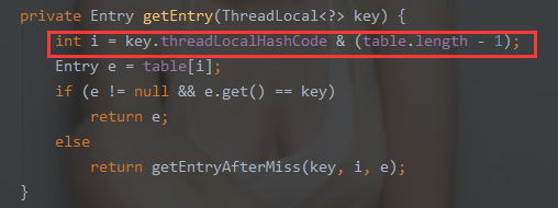如果在数组该位置处的key和传入的key指向同一个ThreadLocal(同一个引用),则直接返回Entry;否则,需要循环在数组的其他位置查找,如果找不到则返回null。