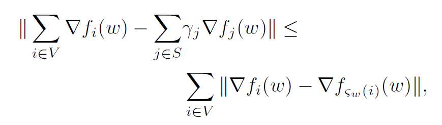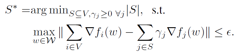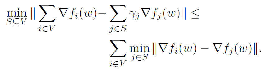 其中 w 是模型权重参数,W 是 w 所有可能取值的区域, $\beta$ 是权重,对于 Coreset 中的每个样本有不同的权重(代表重要程度),使用 Coreset 进行训练时,学习率可以根据权重调整。