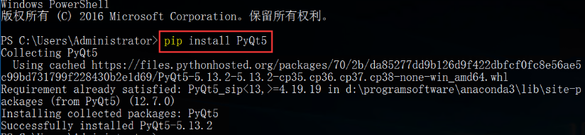 - 安装PyQt5:打开CMD或者PowerShell,在命令窗中输入