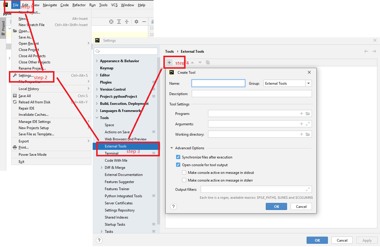 Arguments:$FileName$ -o $FileNameWithoutExtension$.py