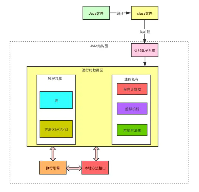 Java文件保存业务逻辑代码,Java编译器将其编译为class文件,保存着JVM将要执行的指令。当JVM需要某个类时,会加载对应的class文件生成Class对象。将class文件加载到虚拟机的内存,这个过程被称为类的加载。类加载的最终产品是位于堆区中的Class对象。