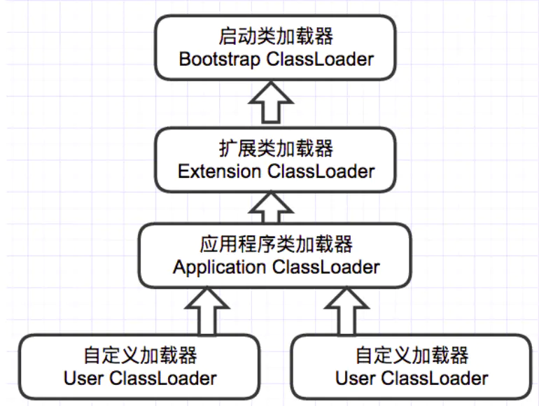 类的加载由类加载器完成,类加载器通常由JVM提供。JVM提供的这些类加载器通常被称为系统类加载器,除此之外,开发者可以通过继承ClassLoader基类来创建自己的类加载器。JVM预定义有三种类加载器: