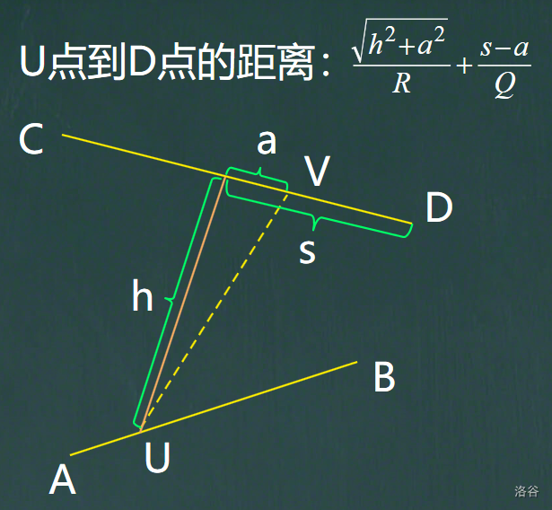 //在确定AB上及CD上的位置后,计算出实际路程长度