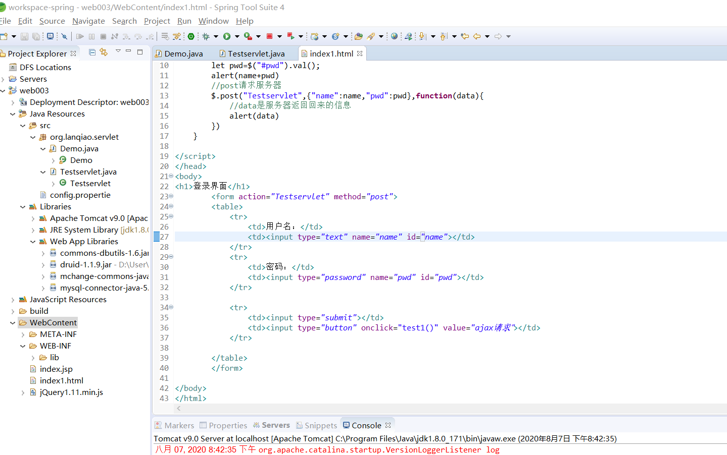 今天的学习内容是J2EE里面的Servlet和JSP。