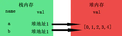 var a = 1; b = a; // 栈内存会开辟一个新的内存空间,此时b和a都是相互独立的 b = 2; console.log(a); // 1