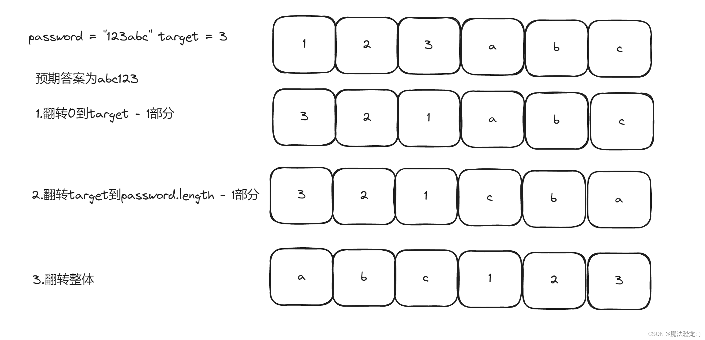 题目要求将每2k个字符将前k个字符进行翻转,如果剩余字符个数大于k但小于2k则反转前k个字符,如果剩余字符个数小于k则将其全部全部反转。