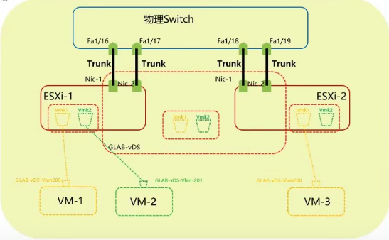 (2)横跨多个ESXI组成的集群的单一交换机。