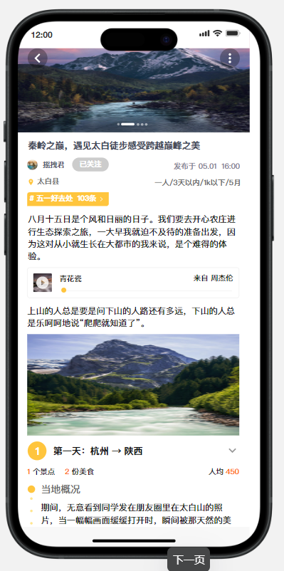 界面功能:展示用户发布的游记、经验分享,支持互动评论。