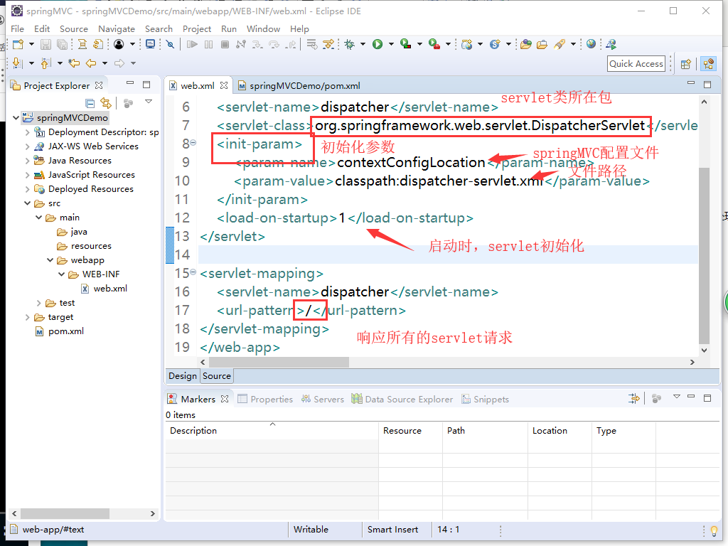 这个文件中配置的都是和web有关的内容,至于项目的其他部分,比如service、dao等也可以配置在这个文件里面。但更一般的,会初始化两个spring上下文,一个用来管理springMVC有关的内容,另一个用来管理项目其他内容(具体到springMVC和spring整合时讲)