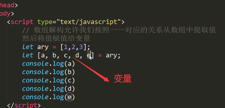 数组解构赋值:相当于把数组的值赋值给左边变量了,d,e因为数组没对应上,所以为undefined