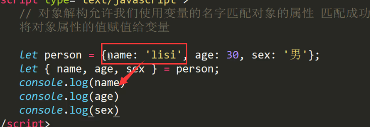 对象解构:也相当于将属性值赋值给新变量了