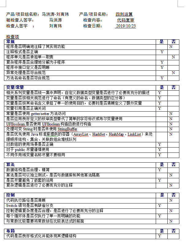 刘育玮的代码审查表(由马洪涛完成)