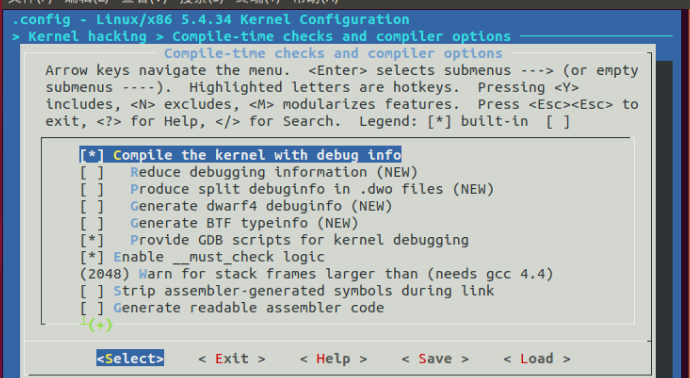 #安装开发⼯具 sudo apt install build-essential sudo apt install qemu # install QEMU sudo apt install libncurses5-dev bison flex libssl-dev libelf-dev #下载内核源代码 sudo apt install axel axel -n 20 https://mirrors.edge.kernel.org/pub/linux/kernel/v5.x/ linux-5.4.34.tar.xz xz -d linux-5.4.34.tar.xz tar -xvf linux-5.4.34.tar cd linux-5.4.34 #配置内核选项 make defconfig # Default configuration is based on 'x86_64_defconfig' make menuconfig # 打开debug相关选项 Kernel hacking ---> Compile-time checks and compiler options ---> [*] Compile the kernel with debug info [*] Provide GDB scripts for kernel debugging [*] Kernel debugging # 关闭KASLR,否则会导致打断点失败 Processor type and features ----> [] Randomize the address of the kernel image (KASLR)
