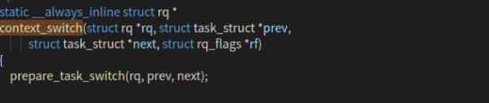 linux中进程调度时,内核在选择新进程之后进行抢占时,通过context_switch完成进程上下文切换。