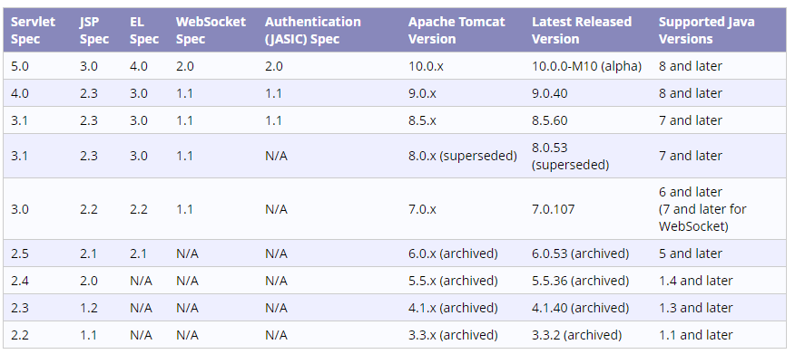 tomcat对应的jdk版本