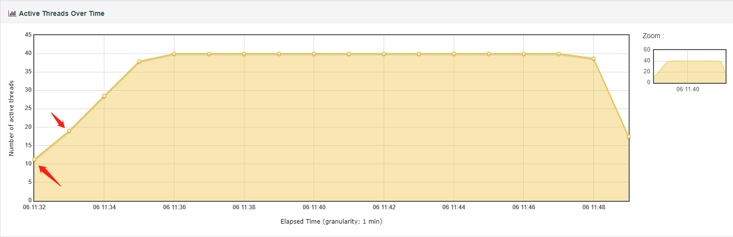 在jmeter 生成的报告中取样间隔默认设置的是1分钟,而非1秒,故样本间的间隔为1分钟,如下图所示: