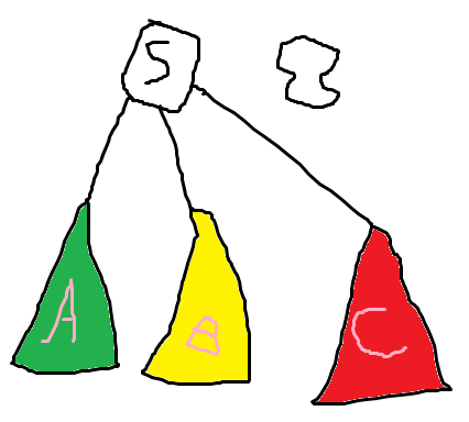 考虑度数 \(\geq 2\) 的点 \(S\),删去它一定会形成至少两个连通块。考虑 \(u \in A\) 和 \(v \in B\),那么在新树上,它们应该位于 \(S\) 的同一子树再考虑 \(u \in A\),\(v \in B\) 和 \(u2 \in A\),因为 \(u\) 和 \(v\) 在同一子树,又因为 \(u2\) 和 \(v\) 在同一子树,所以 \(u\) 和 \(u2\) 在同一子树。所以可以证明,\(A,B,C\) 中的所有点,都应该在 \(S\) 的同一子树内,那 \(S\) 就只可能是叶子节点。