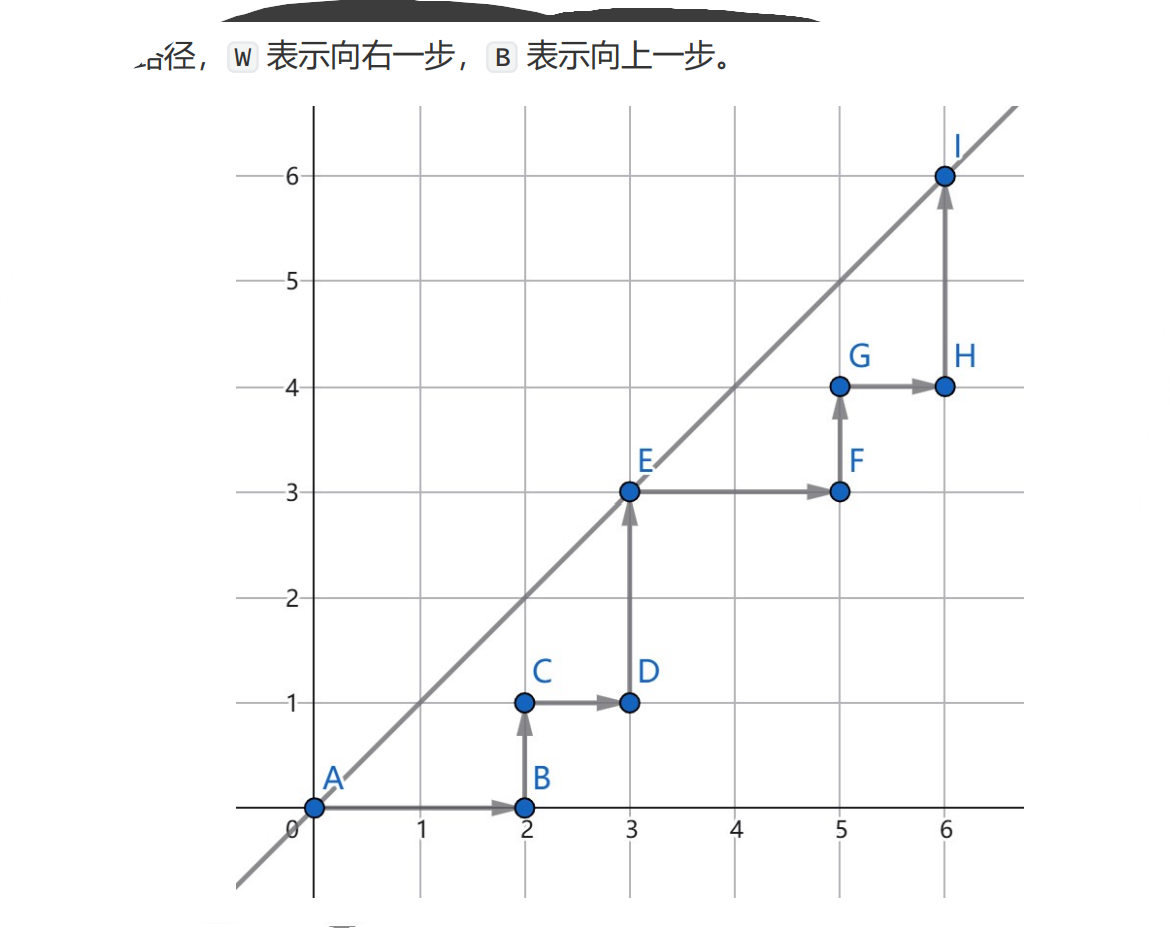 哈哈哈,仔细想想发现这个观察其实并不显然。不过既然它是一个匹配关系,而且能被划分的条件是把 W 看成 \(1\),B 看成 \(-1\) 时前缀和都 \(\geq 0\),那么可以把它转化成网格图。
