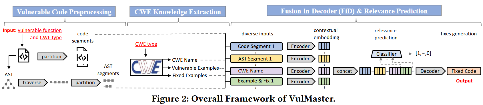 提出了 VulMaster,第一个将 FiD 框架运用到软件工程领域中,给出了如何利用它减轻长度限制,并与其他辅助信息集成的方案