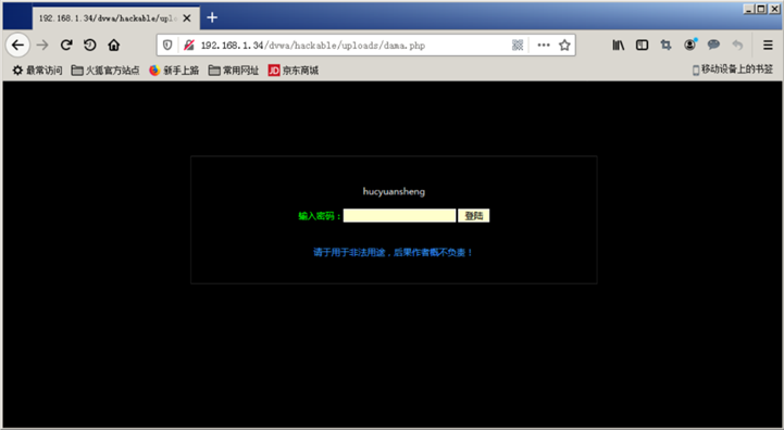 http://【靶机IP地址】/dvwa/hackable/uploads/dama.php